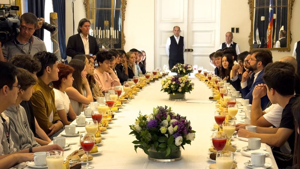 Presidente Gabriel Boric lidera desayuno en La Moneda para reconocer a estudiantes destacados